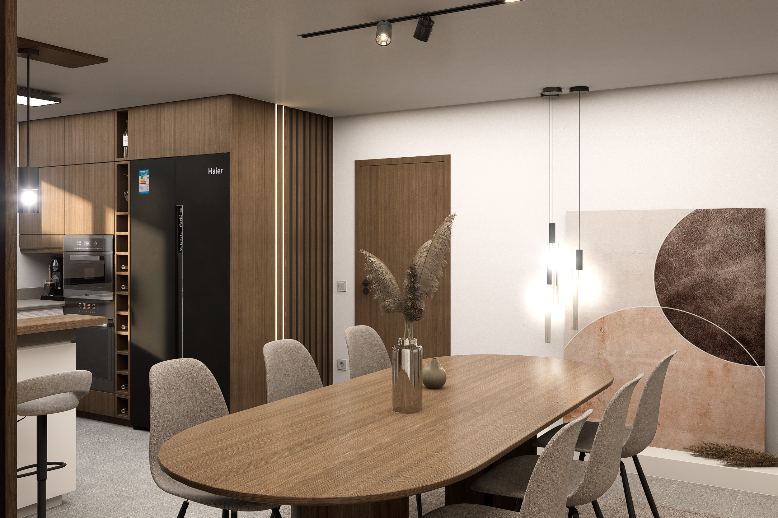 Adotou-se uma paleta cromática assentada nas tonalidades neutras que permitiram criar uma base intemporal e mais iluminada. Com a introdução de madeiras acrescentou-se um toque caloroso e de conforto aos ambientes, estabelecendo um equilíbrio entre sofisticação e o aconchego. Surgem ainda alguns apontamentos em tons mais escuros, formalizando e enaltecendo os detalhes, conferindo contraste e reforçando o caráter moderno do projeto.